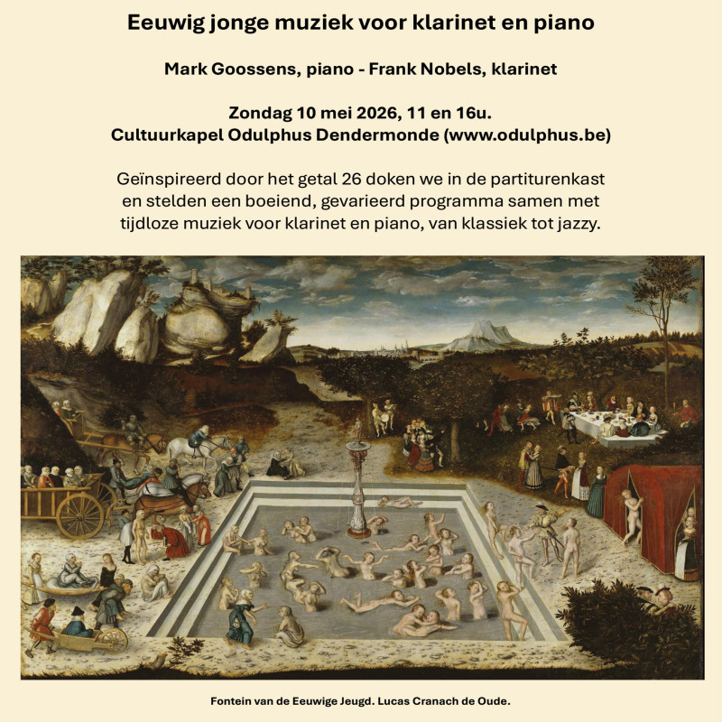 Eeuwig jonge muziek voor klarinet en piano. Mark Goossens ( piano) en Frank Nobels (klarinet) doken in de partiturenkast met het getal 26 als leidraad.